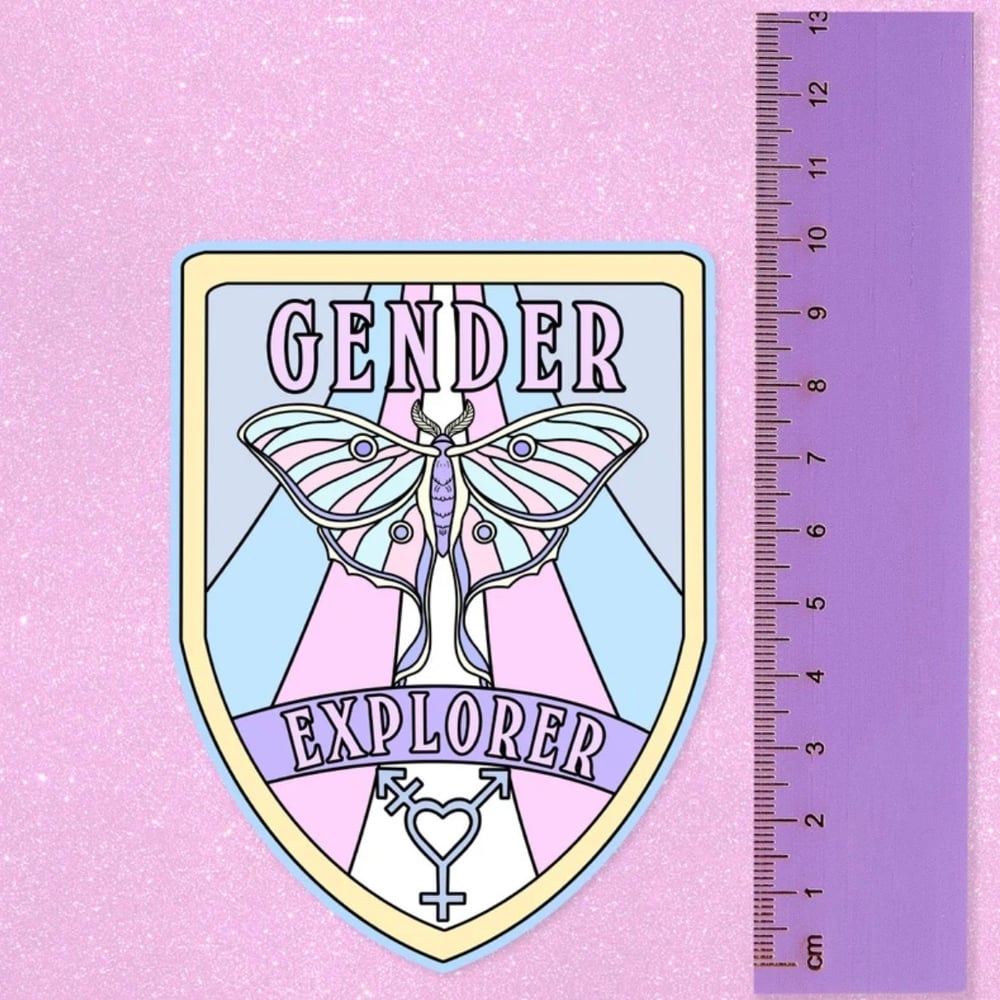 This vinyl sticker measures 10cm at its widest point, is weather-resistant and affixes to all smooth surfaces.